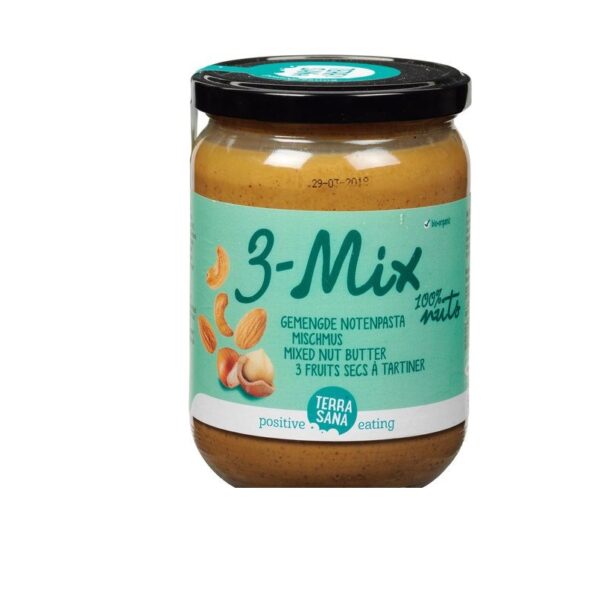 Deze heerlijke notenpasta van Terrasana bestaat uit een mix van geroosterde cashewnoten, amandelen en hazelnoten. De notenpasta heeft een zachte en lichtzoete smaak. Heerlijk op de boterham of om door baksels of smoothies te mengen. De notenpasta is uiteraard zonder toevoegingen. Hierdoor kan er na verloop van tijd een laagje olie op de notenpasta ontstaan. Gewoon even doorroeren en lekker genieten!